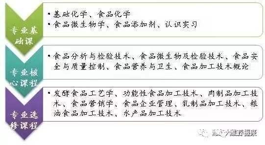 本专业的专业课程主要分为三部分,专业基础课程、专业核心课程和专业选修课程。通过专业课程的学习,学生最终能熟练掌握食品检测、食品营养膳食配餐、食品加工等方面的专业技能。
