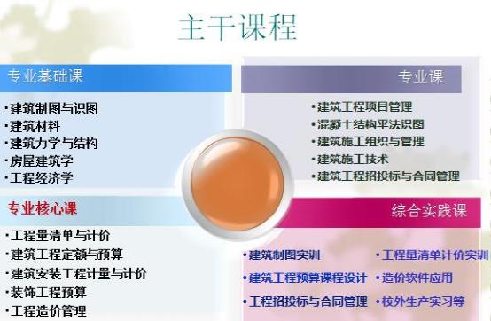 培养目标:本专业培养德、智、体、美全面发展,践行社会主义核心价值观,具有一定的文化水平、良好的职业道德和人文素养,掌握本专业的基本知识和主要技术技能,面向建筑、咨询、房地产、政府机关等行业,能够在建设单位、施工企业、设计部门、监理公司、咨询公司、工程造价管理等部门从事工程造价的确定与控制、工程施工、工程成本分析、项目管理、工程监理、投资控制等工作的高素质技术技能人才。